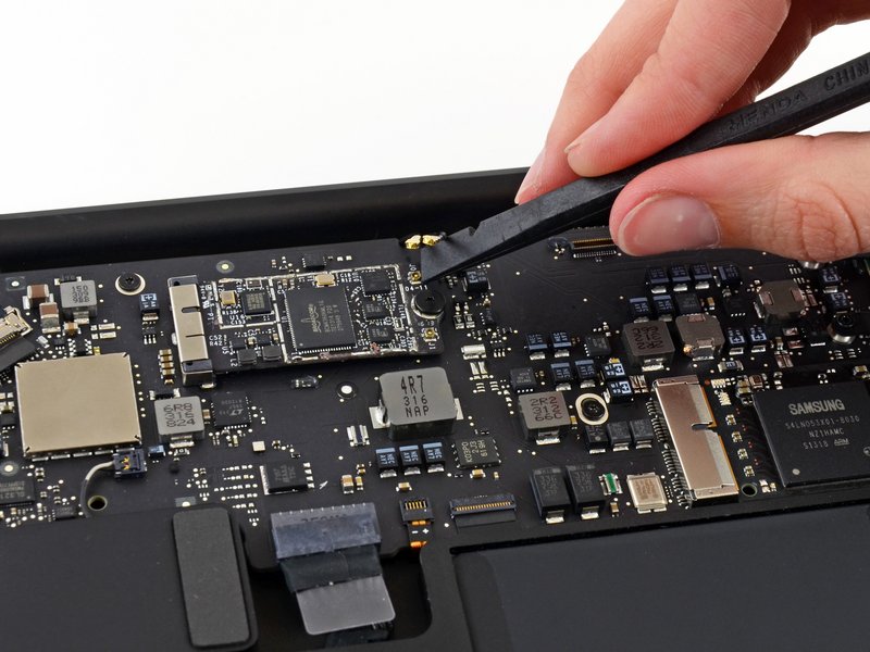 Wi-Fi/Bluetooth 안테나 케이블을 뒤로 잘 껴줘야 합니다.