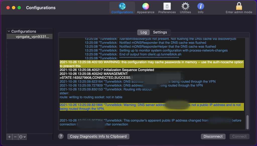 위의 동영상처럼, 다운로드한 OpenVPN 설정 파일을 Tunnelblick에 드래그 앤 드롭하면 설치가 됩니다.