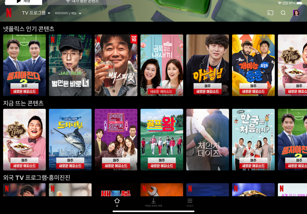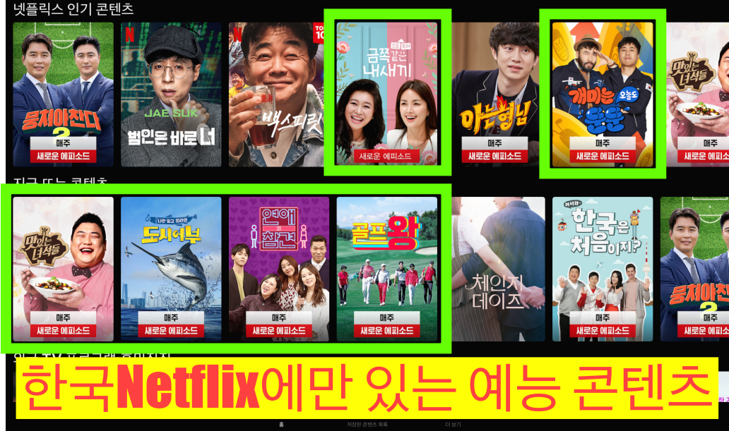 그 외에도 예능들도 많은 부분 한국 Netflix에만 있는 콘텐츠들이 많답니다.