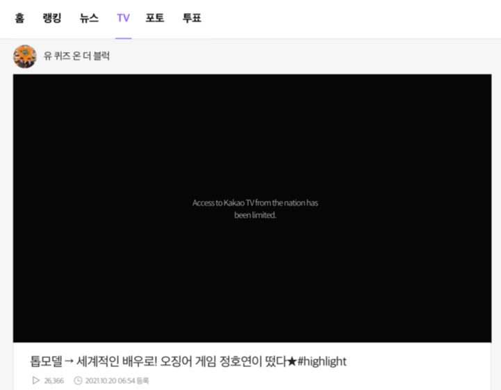 "지역 제한된 콘텐츠(nation has been limited)"라는