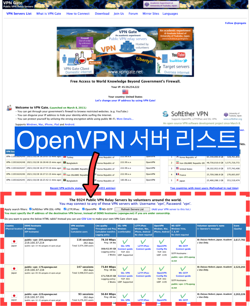 OpenVPN 서버 리스트 중에,