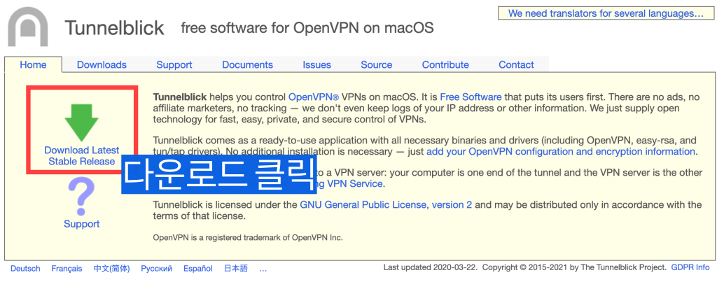 ① Tunnelblick 다운로드 및 설치