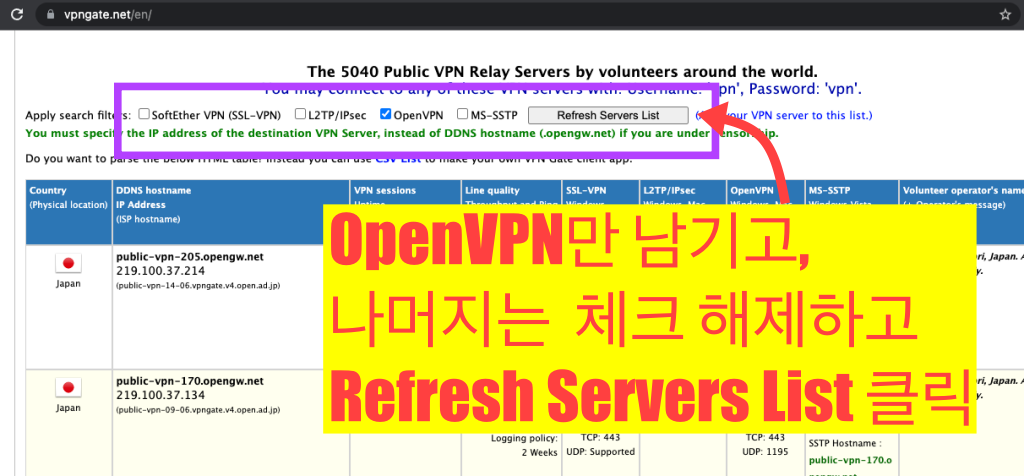 OpenVPN 서버 리스트 중에,
