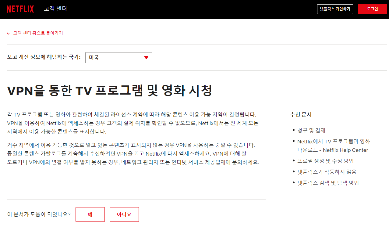 VPN을 통한 TV 프로그램 및 영화 시청: https://help.netflix.com/ko/node/114701