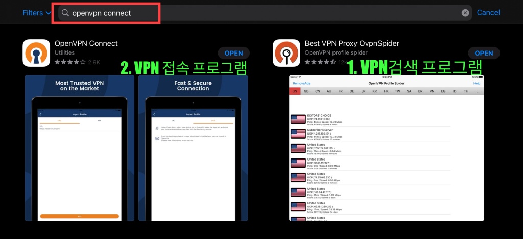 애플의 앱 스토어(App Store)에서 "openvpn connect"로 검색을 해봅니다.