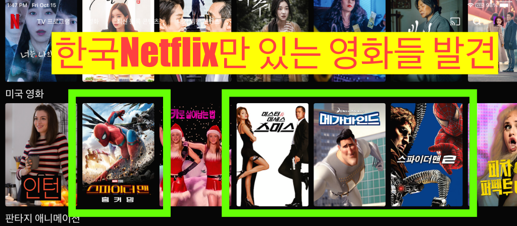 미국 Netflix에 없는 영화와 드라마들이 나타나는 것을 볼 수 있습니다.