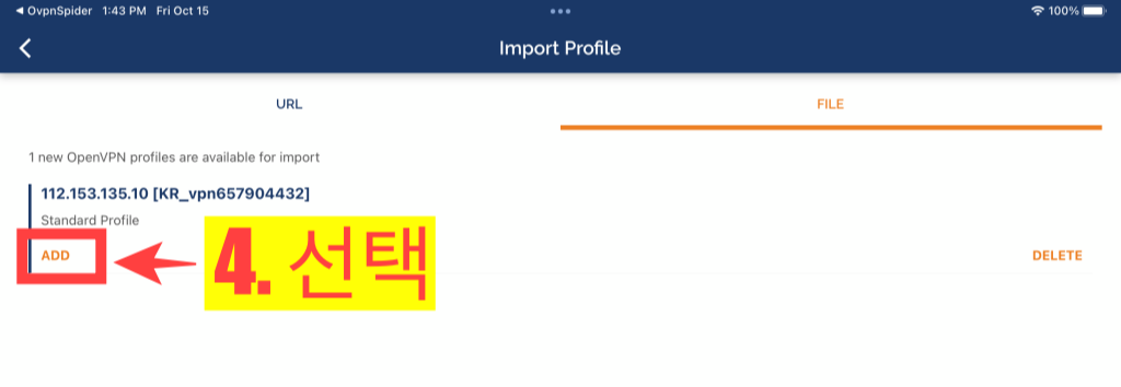 ④ OpenVPN에서 "ADD"를 눌러주면 VPN이 추가됩니다.