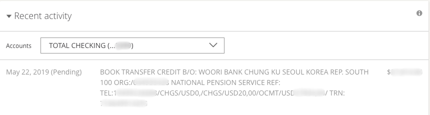 미국 은행으로 입금이 5/22(미국PST기준) 되었답니다. 정말 한국 서비스는 빠르네요.