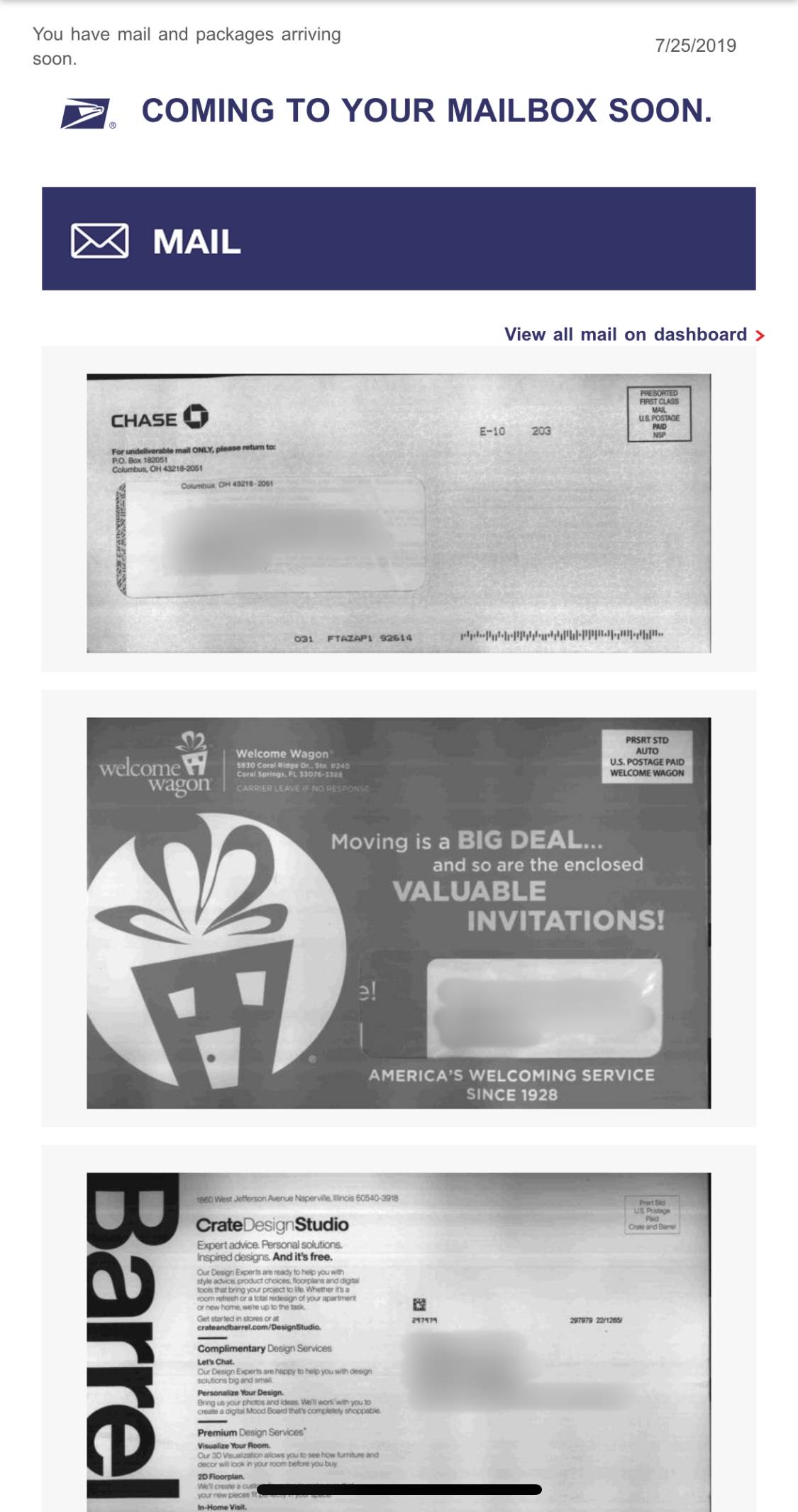 미국의 주소변경 서비스는 정말 유용합니다. 해당 서비스는 한번 신청하면 2달간 서비스를 해줍니다. (저의경우: July 1 - Aug29)