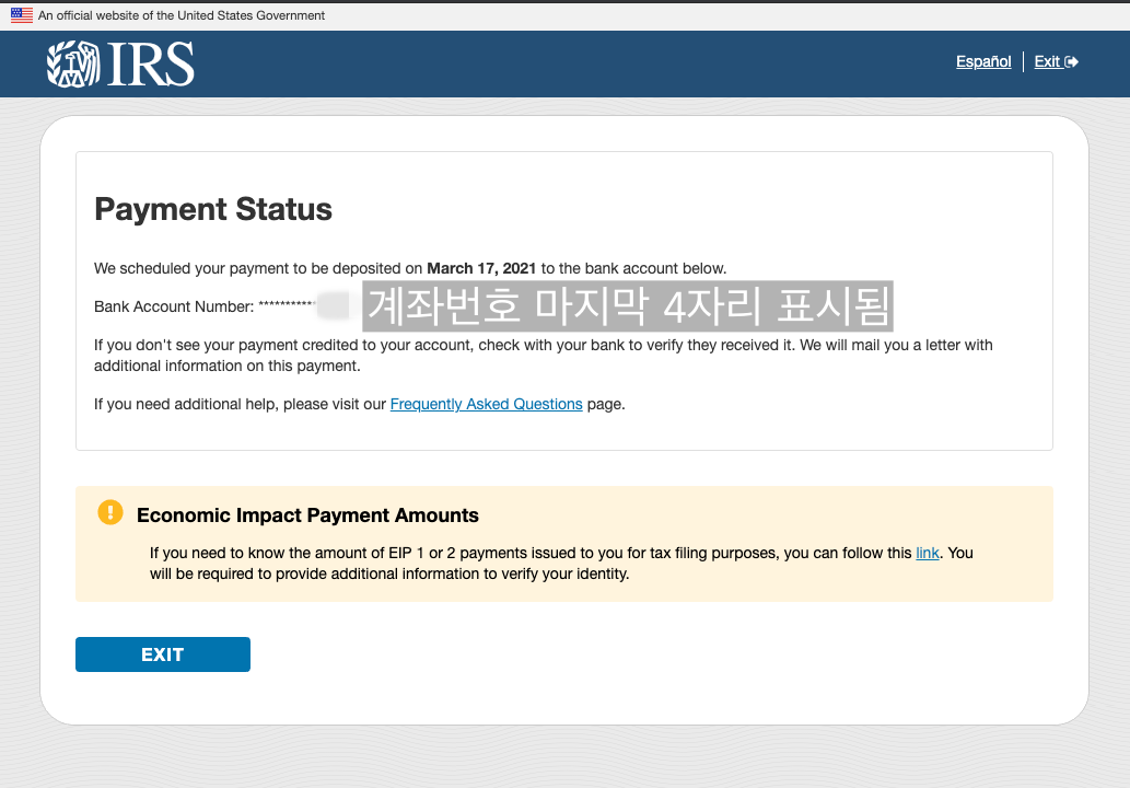 현재, IRS(국세청) 공식 사이트 irs.gov 에서 현금 지원 상태를 확인할 수 있습니다.