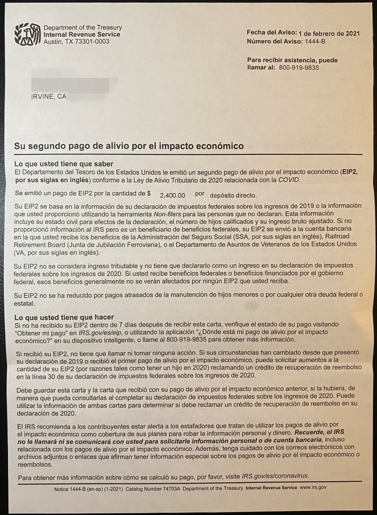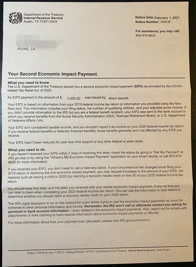 2020년 12월 말에 2번째 코로나 구호 패키지에 미국민 직접 지원금이 마지막에 포함되면서,