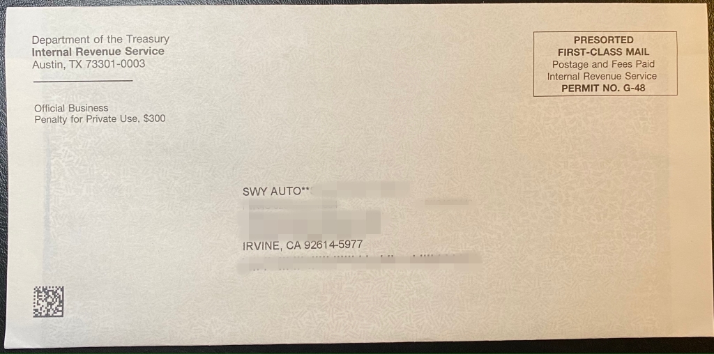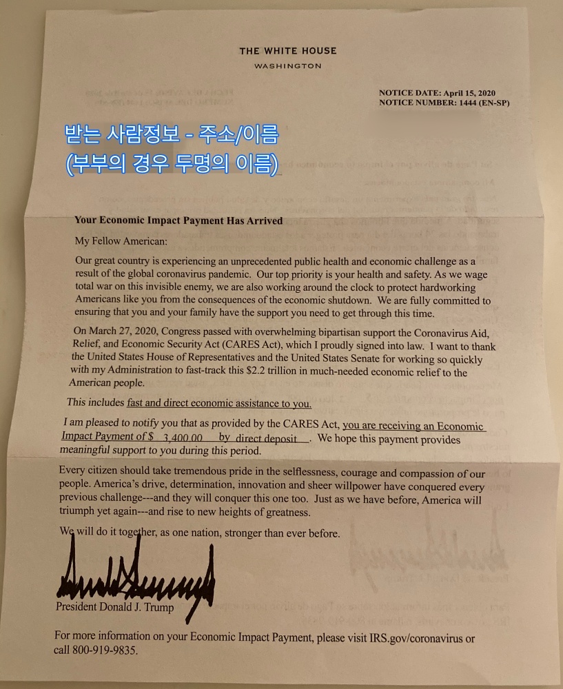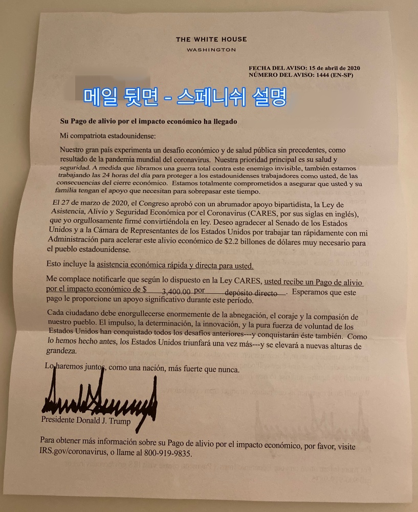 THE WHITE HOUSE라고 쓰여있던 내용이 더 좋긴 했었는데, IRS로 쓰여있으니 약간 삭막하네요.