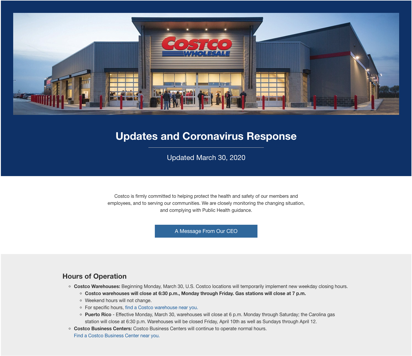 코스코 3월30일부터 평일(월-금) 영업시간 단축,