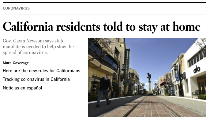 샌프란시스코처럼 주민들의 이동을 제한하는 'Shelter in place' 보다는 낮지만,