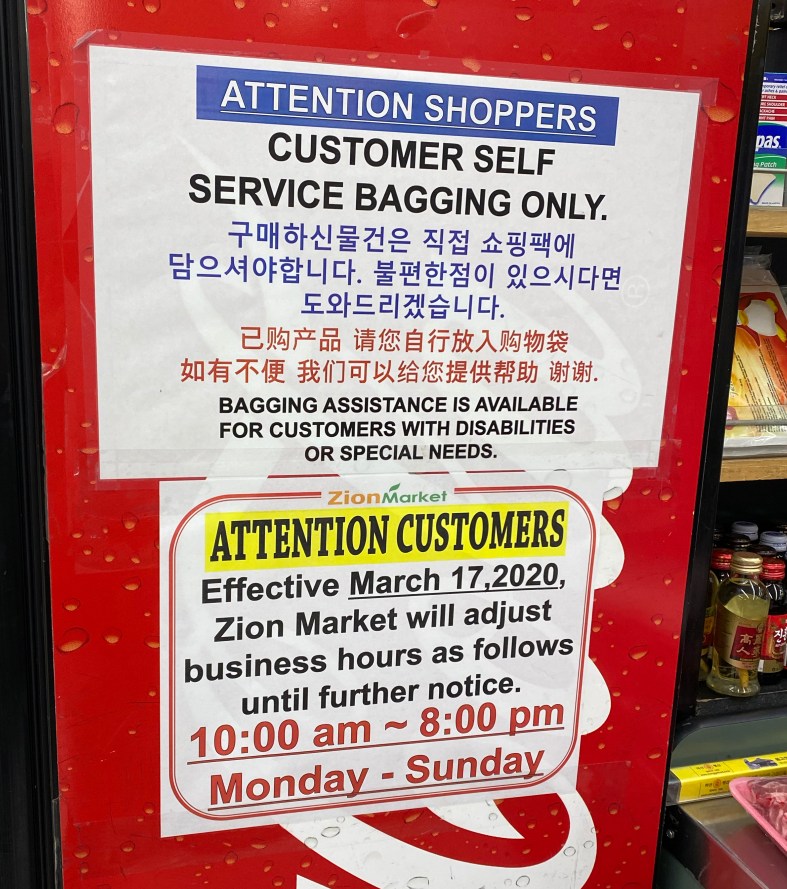 구매 물건을 쇼핑백에 담는 일도 이제 고객이 해야 하더군요.