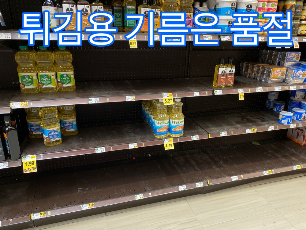 Grocery Store(식료품 마트)에 생필품 품목들이 사재기 현상이 심각해졌답니다.