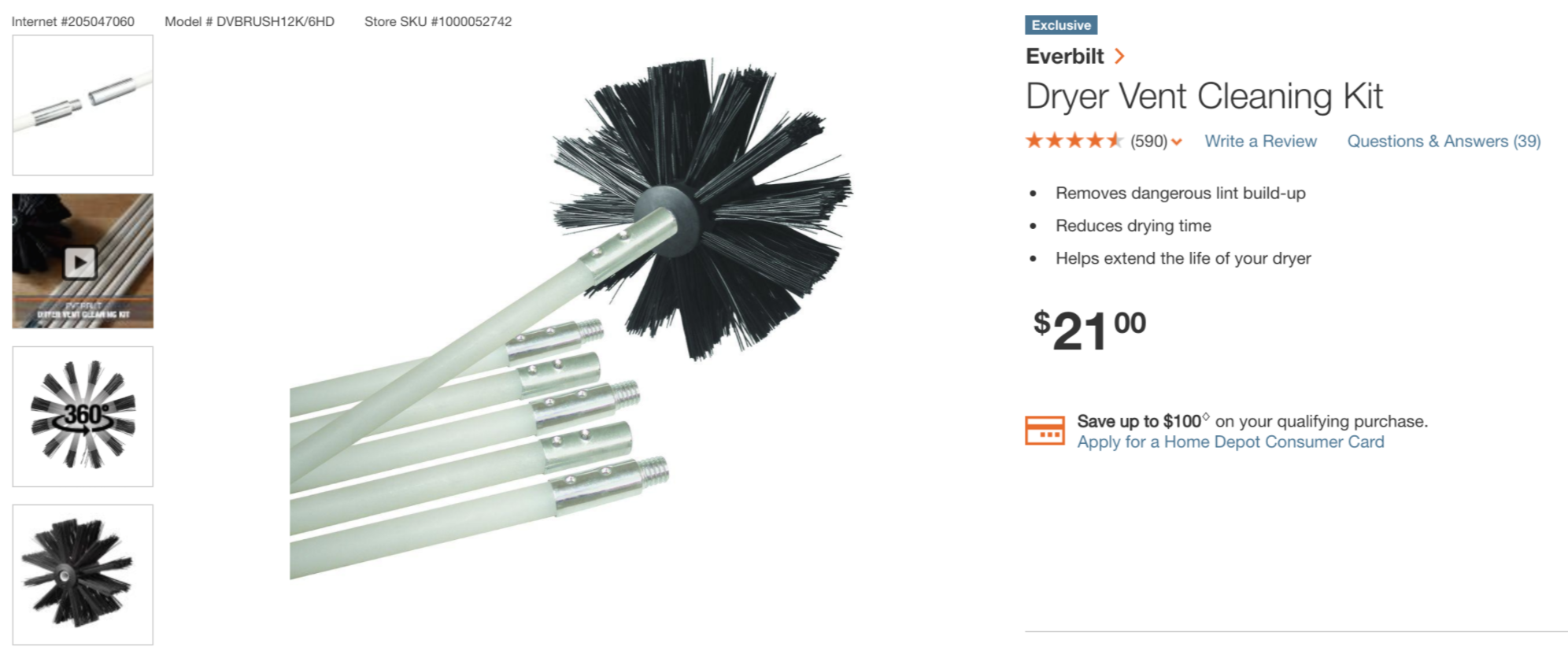 Dryer Vent Cleaning Kit (홈디포)