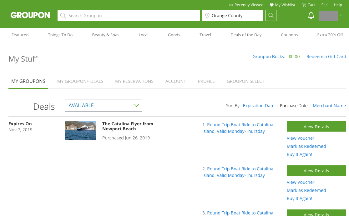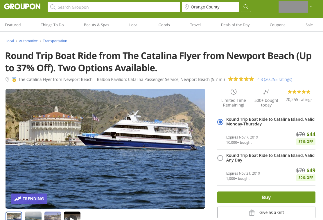 (Groupon: catalina island round trip으로 검색하면 나옵니다.)