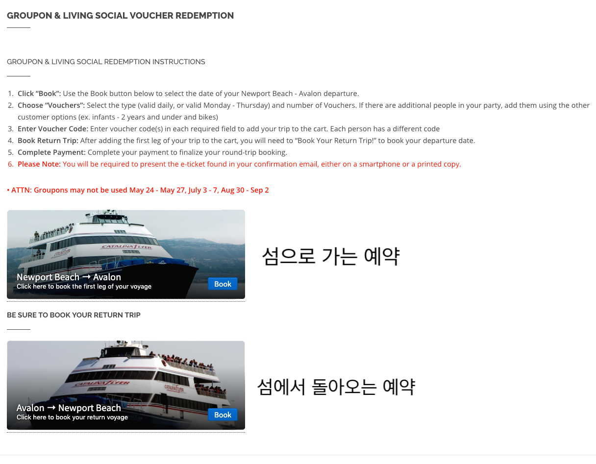 온라인 Booking 사이트: http://www.catalinainfo.com/groupon.html