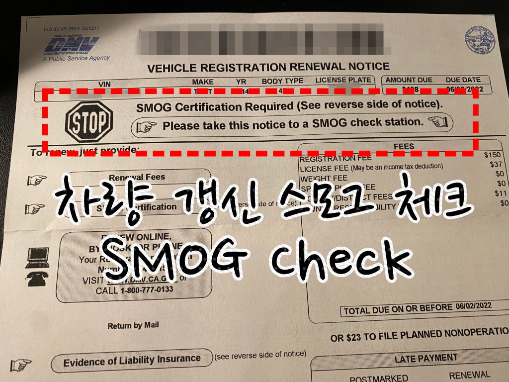 - 준비물 확인: 스모그 체크를 받기 위해서는 "Vehicle Registration Renewal Notice(차량 등록 갱신 통지서)"를 지참해야 합니다. 이 문서는 DMV에서 발송하는 차량 등록 갱신 안내서로, 검사소에서 차량 정보를 확인하는 데 필요합니다.