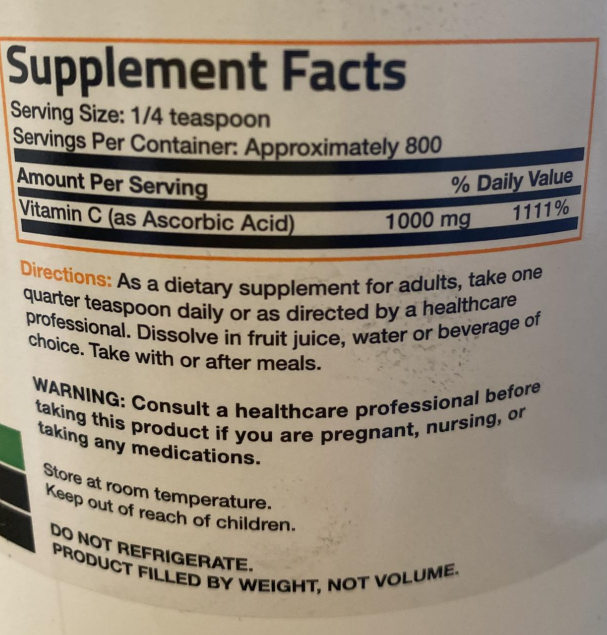 비타민C 함량이 1/4티스푼에 1000mg 들어 있습니다.