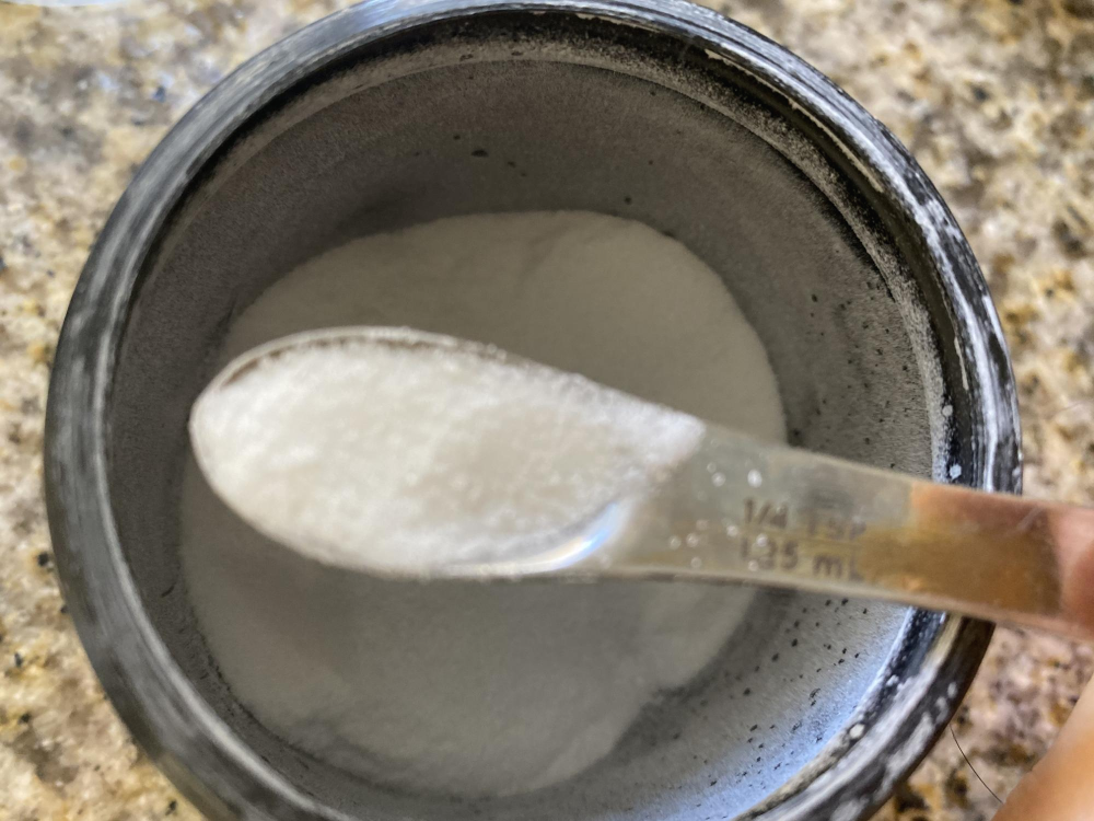 저는 일반 플라스틱 수저를 사용하는데 정확한 양을 보여주기 위해 담아 봤습니다.