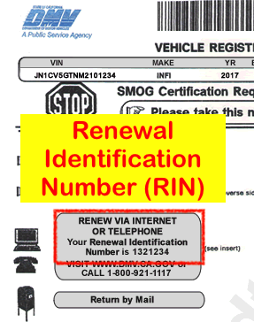 자동차 등록증 연장(Vehicle Registration Renewal Notice) 편지에 있는 Renewal Identification Number (RIN)가 있어야 합니다.