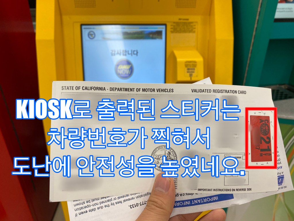 키오스크에서 나오는 차량 등록증과 스티커는 다릅니다.