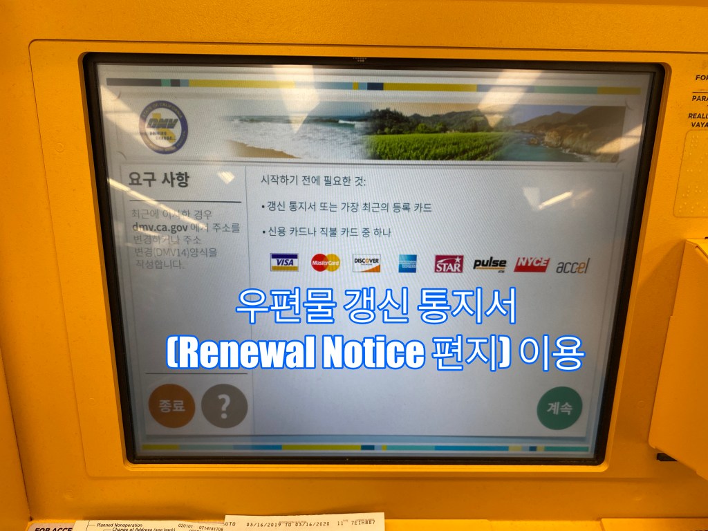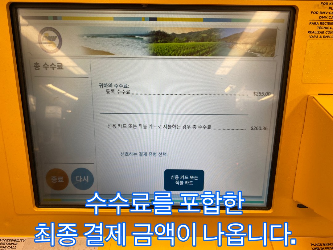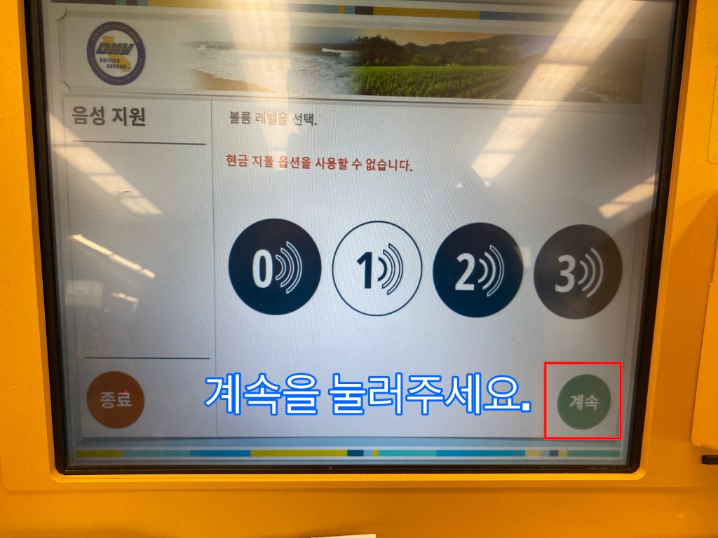 Kiosk로 납부를 원하시면, 각 지역에 가까운 Kiosk 안내가 DMV 사이트에 있습니다. (https://www.cadmvnowkiosk.com/kiosks/)