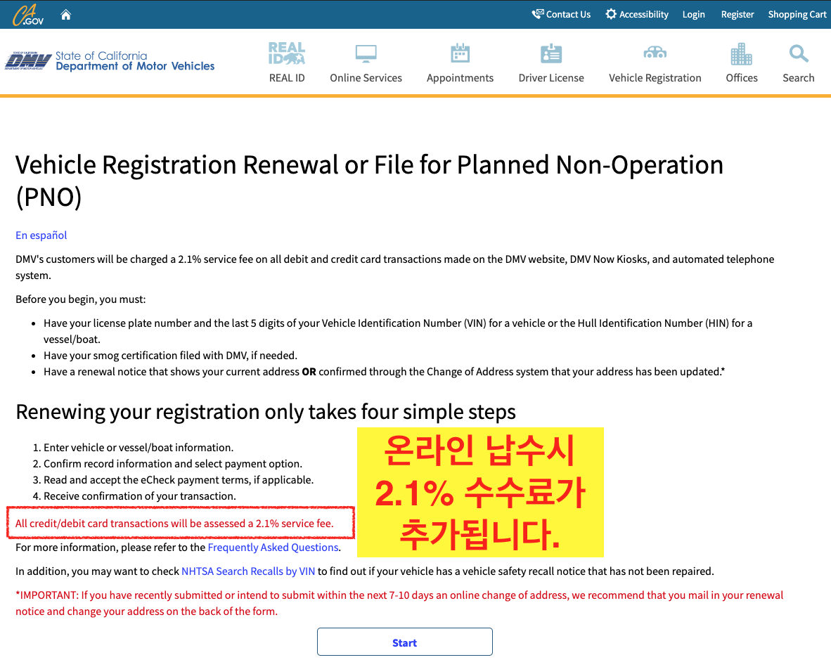 DMV 차량 등록증 연장은 1년에 한 번씩 하게 됩니다.