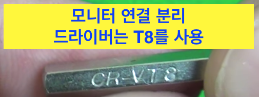 9) 90도로 열고, 모니터 지탱하고 있는 드라이버 분리