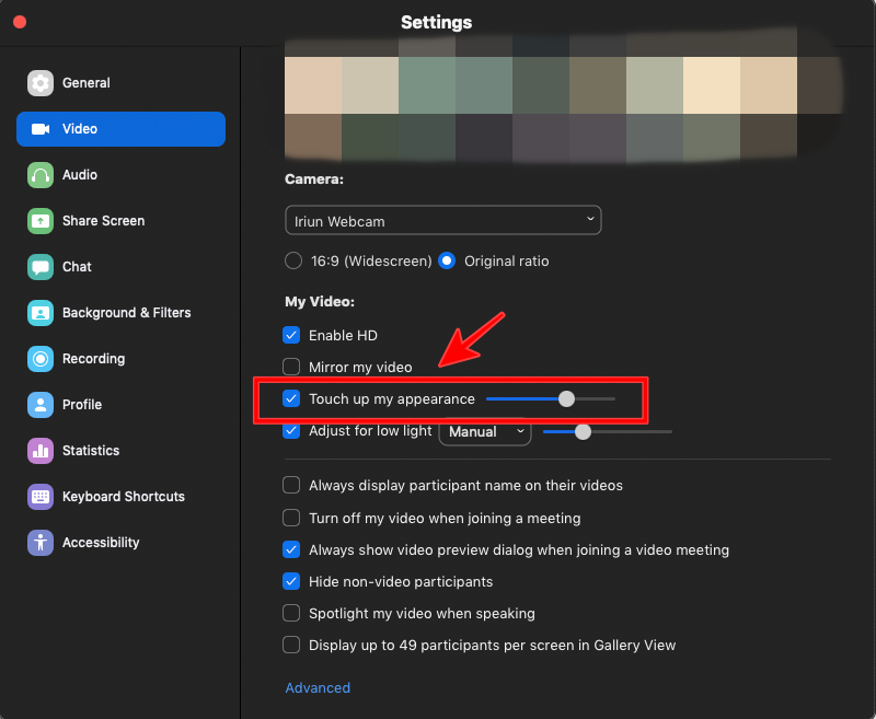 + Zoom 비디오 설정으로 추가 뽀샵 설정