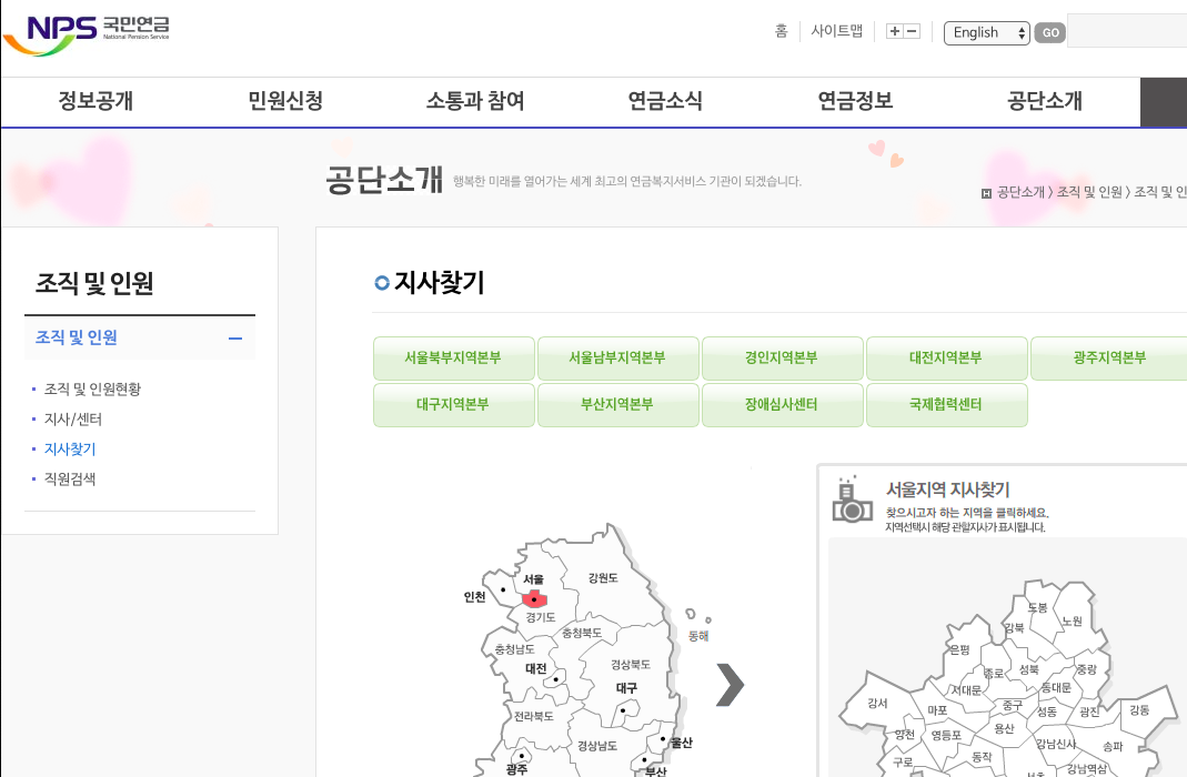 국민연금 지사 찾기: http://www.nps.or.kr/jsppage/app/intro/nps/current/current_06.jsp
