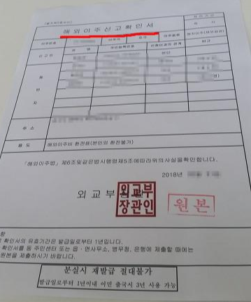 | ※ 2017.12.21부터 현지이주자도 재외공관에 해외이주신고를 하여야 하며 이주와 관련한 사무(주민등록, 국민연금, 국민건강보험, 세금부과, 외국환거래 등 각종 국내 행정관련 사무)를 위해 필요한 경우 거주여권 대신 해외 이주신고 확인서를 발급받아 사용해야 함. |