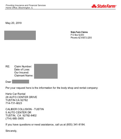 어제 (05/20/2019)에 보험사에서 전화가 왔답니다.