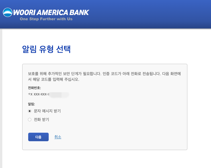 받는 사람의 한국 우리은행 계좌 정보에 등록된 연락처로 전화를 해서 안내을 주는데,