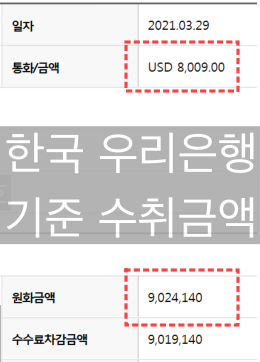 원화 수취금액이 KRW 9,024,140원이었습니다.