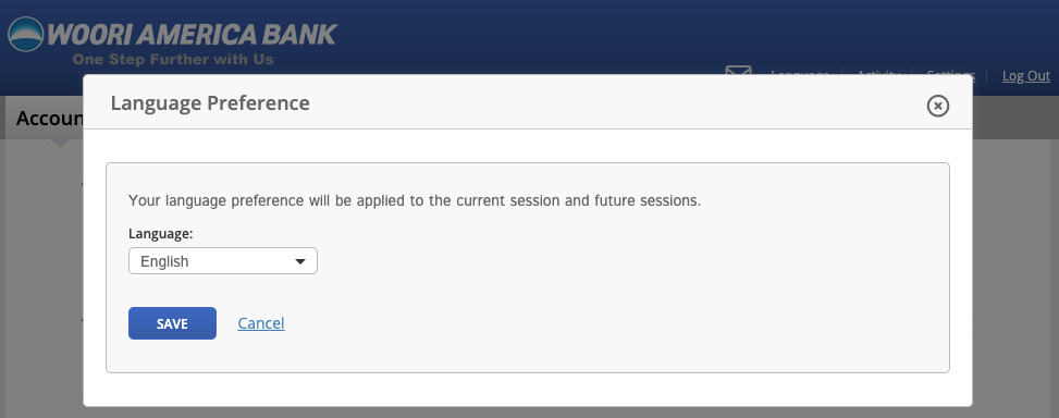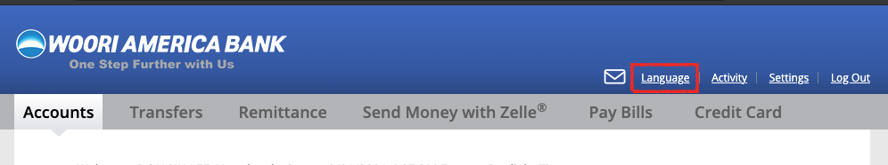 [ Woori America Bank 사이트 - 한국어로 변경하기 ]