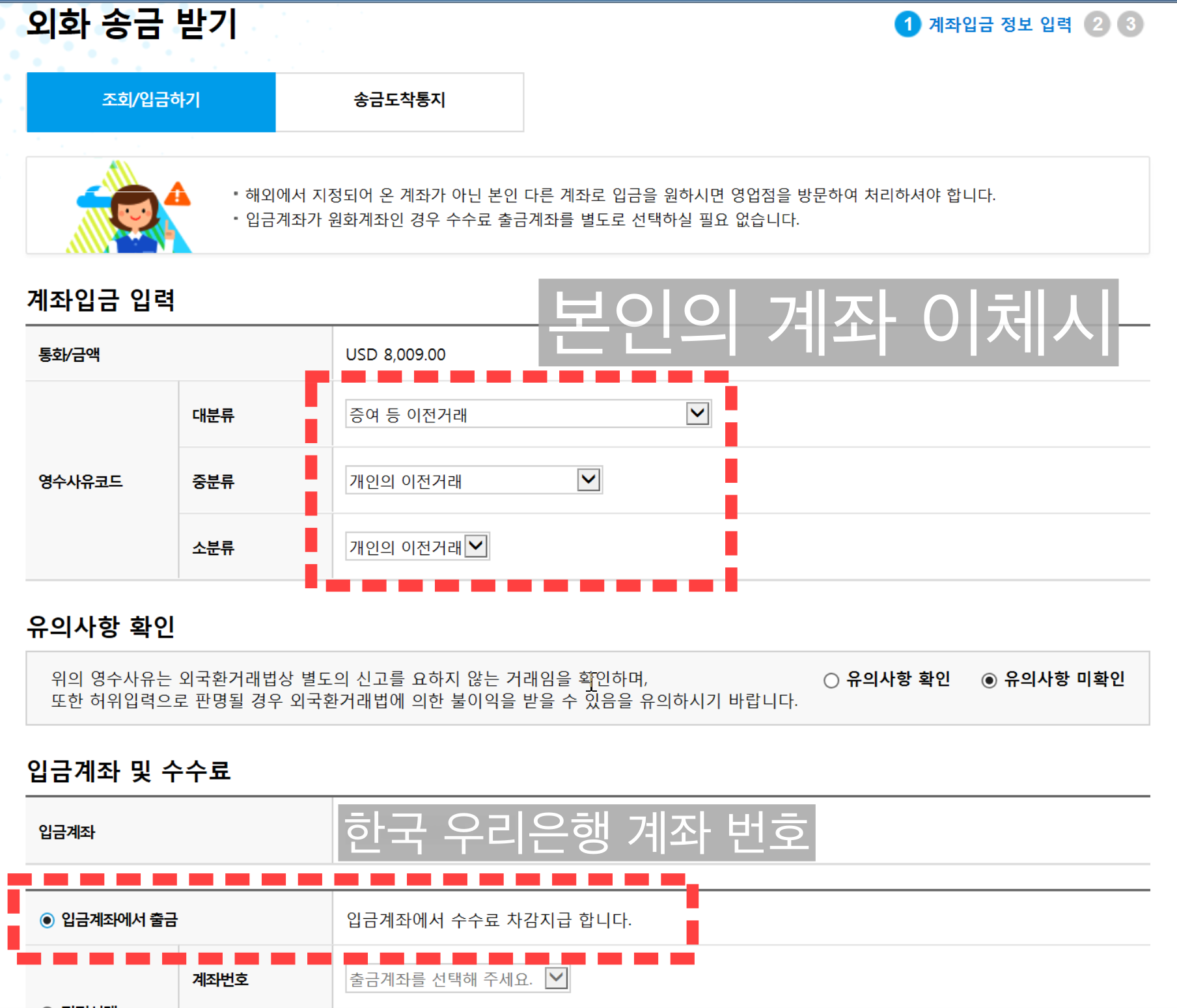 처음으로 한국으로 USD 이체를 이용하다 보면,
