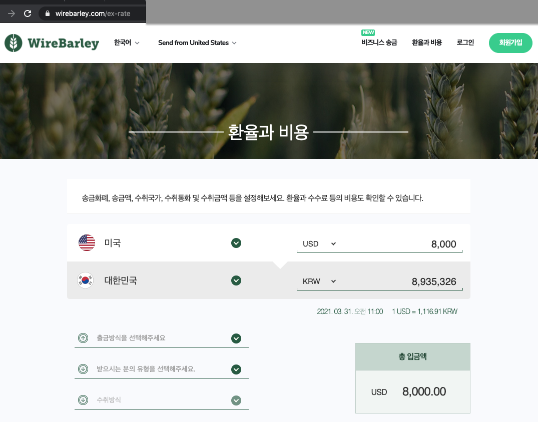 (참고 2: WireBarley 1회 최대 송금액은 $2,999입니다.)