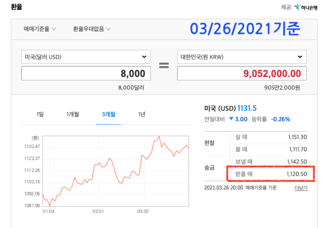 계좌입금 당시의 환율로 적용이 된다는 점 알고 계십시오.