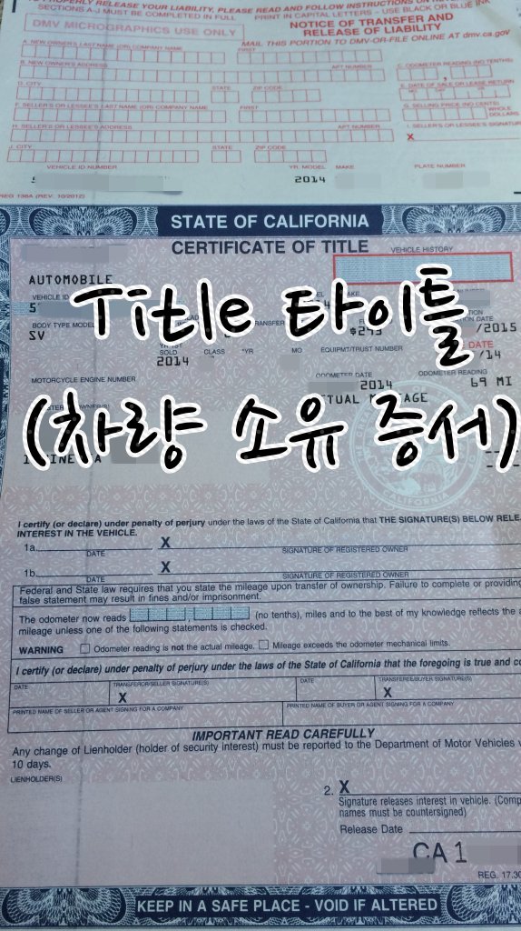 => 중고차를 구매한 경우, 타이틀이 본인 명의로 변경되었는지 확인, 차 안에 두지 말고, 따로 보관하는 것이 안전