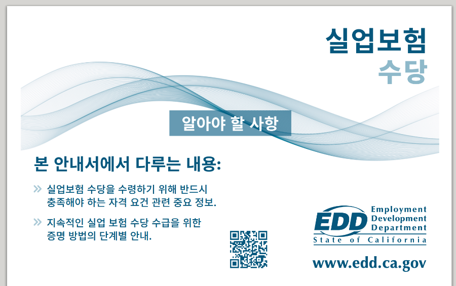 미국 각 주마다 고용개발부 EDD(Employment Development Department) 에 실업보험UI(Unemployment Insurance) 수당을 신청하고 수령할 수 있습니다.