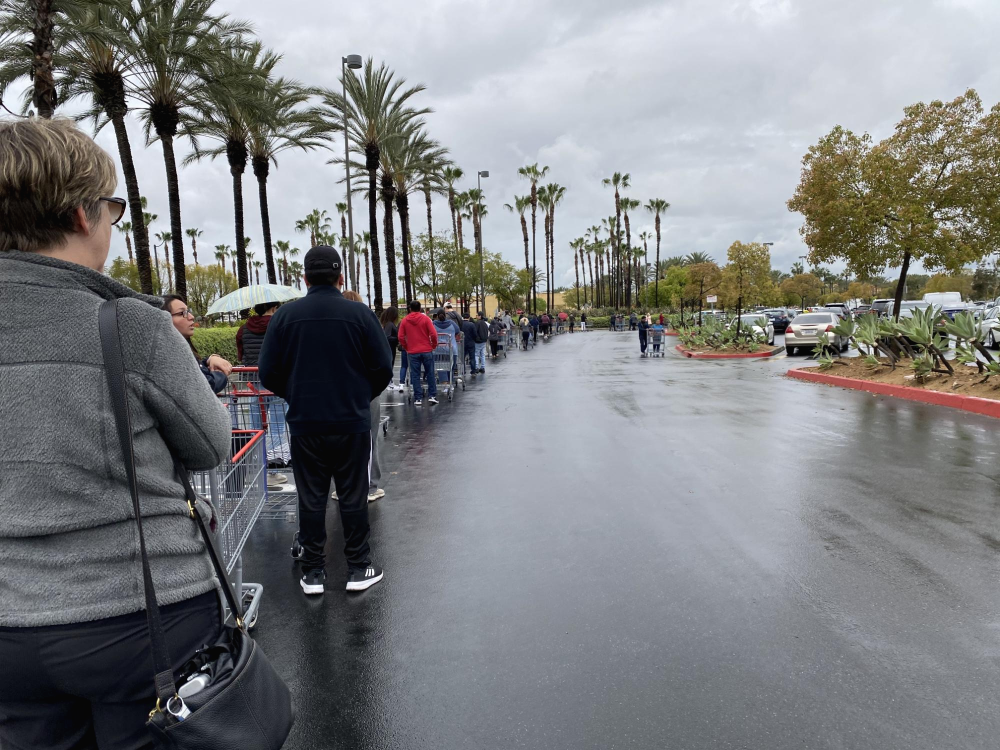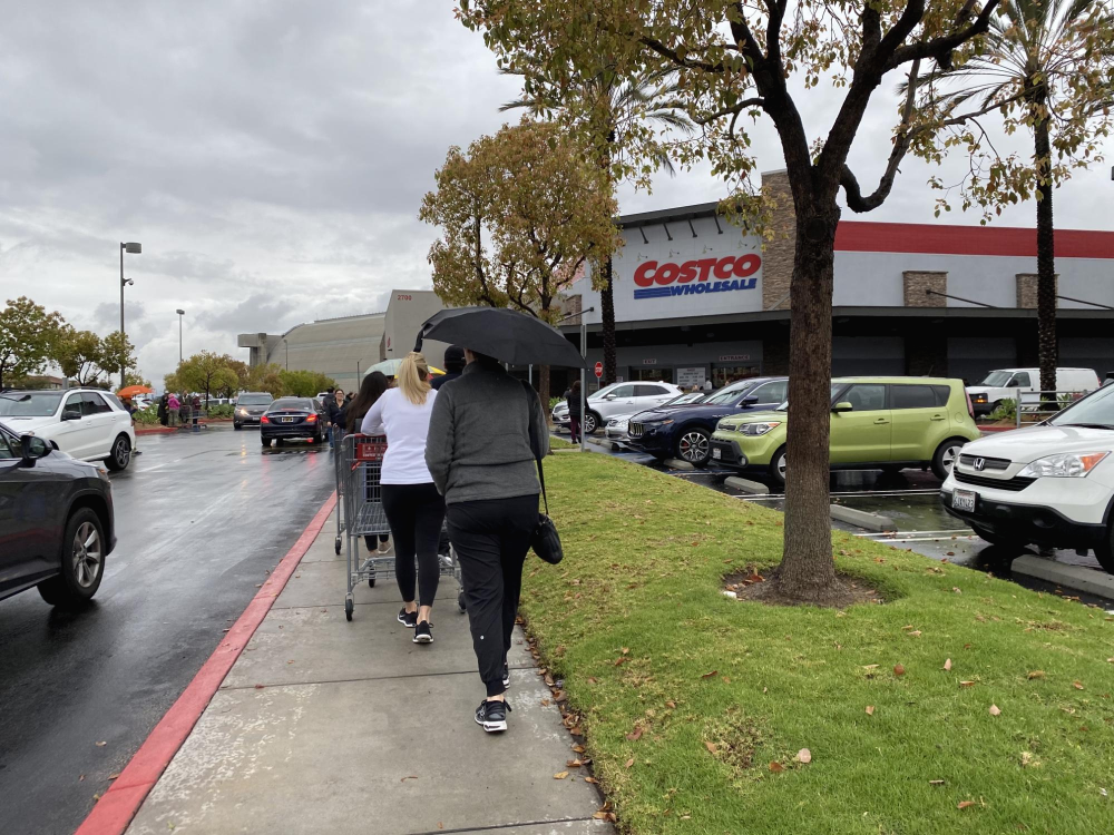 코스코(Costco)의 매장에는 물건을 사려는 사람들로 북새통을 이르고,