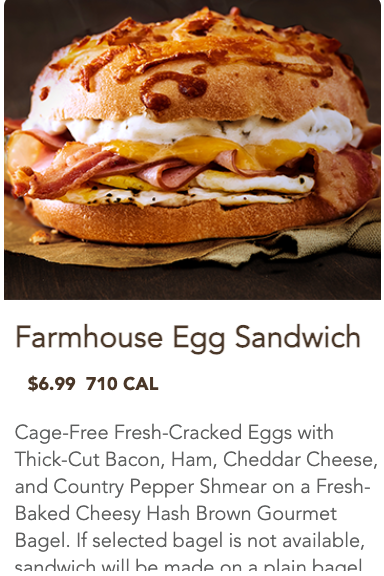 (팜하우스 에그 샌드위치 베이글: 약 $8.19+Tax)