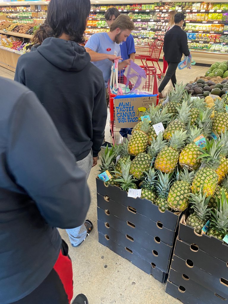 The girls in line mentioned that they had been waiting since 6 AM, and at that moment, there were about 200 people lined up in Irvine. They shared their genuine love for the tote bags, showcasing just how passionate fans can be about these items. It was heartwarming to see such enthusiasm and community spirit among fellow Trader Joe's enthusiasts!